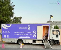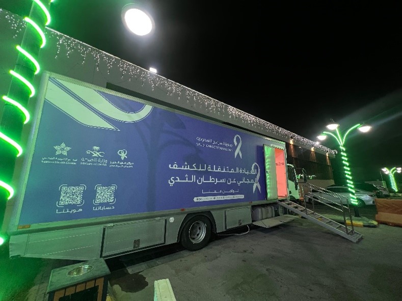 لأول مرة شاحنة جمعية السرطان السعودية في جسر الملك فهد للكشف المبكر عن سرطان الثدي